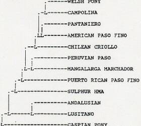 The cluster analysis of the Sulphur herd with other selected breeds using the RML analysis does not appear to support the Spanish ancestry (Figure 1) However, this figure must not be taken at face value. The RML procedure is designed to determine ancestor descent relationships based upon genetic distance among populations within the analysis. An outgroup population (in this case the Przewalski horse) is used to determine the most ancient split among all the populations. In the case of domestic (and feral) populations or breeds, it is not possible to depict true ancestor-descendent relationships due to high degree of crossing among horse breeds throughout the history of domestic horses. However, it can produce dendrograms that show realistic associations among the breed.